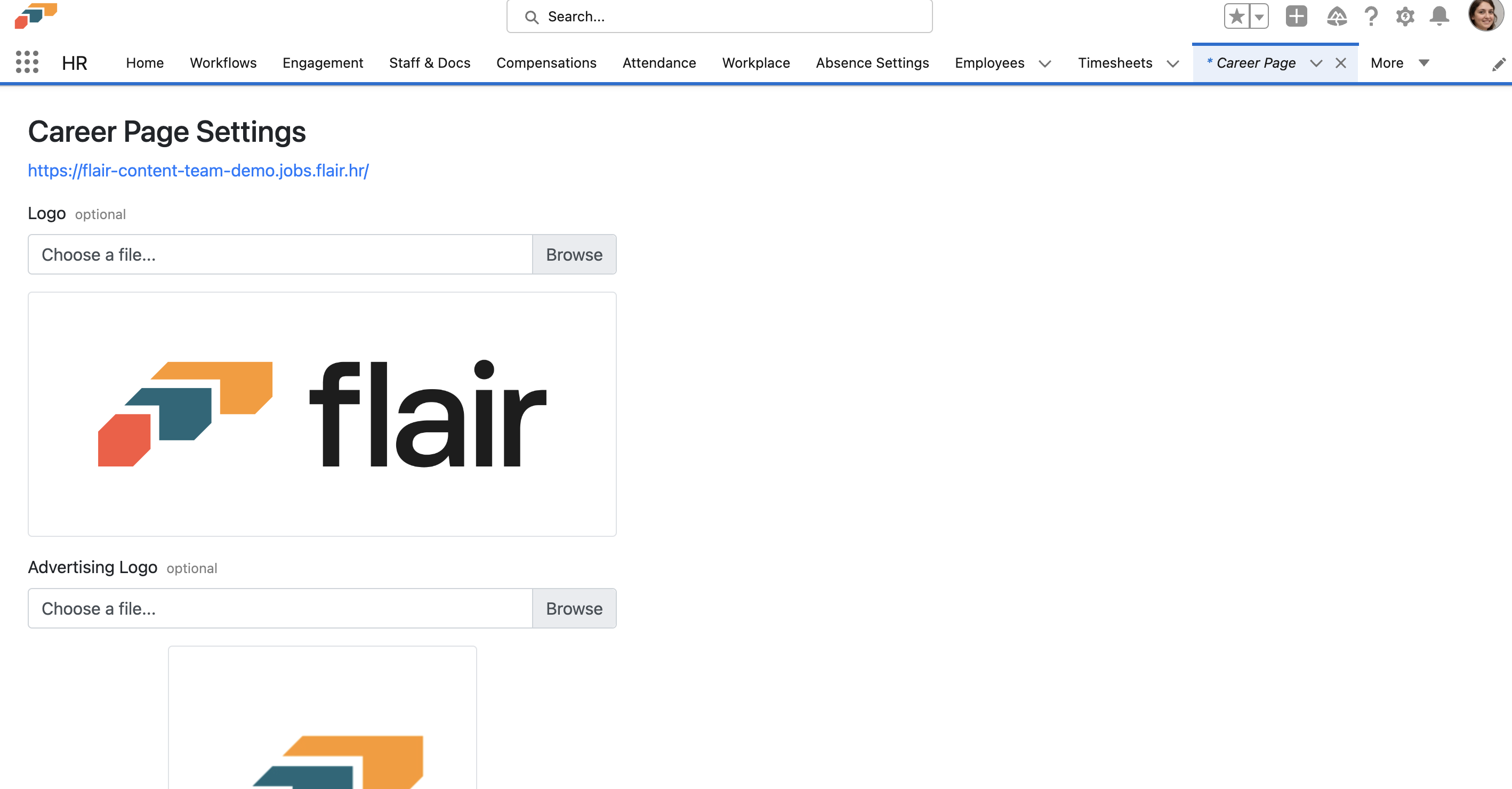 Career Portal Welcome Page: A new welcome tab is now available in the flair Recruiting app when creating your first career portal. π