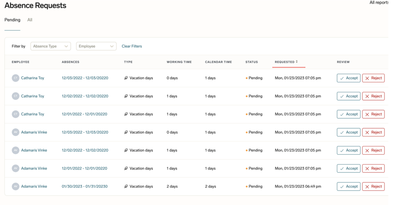 Management Absence Column: In the Employee Hub, we've added a column that allows managers to see the time, day, and month an absence request was submitted. π