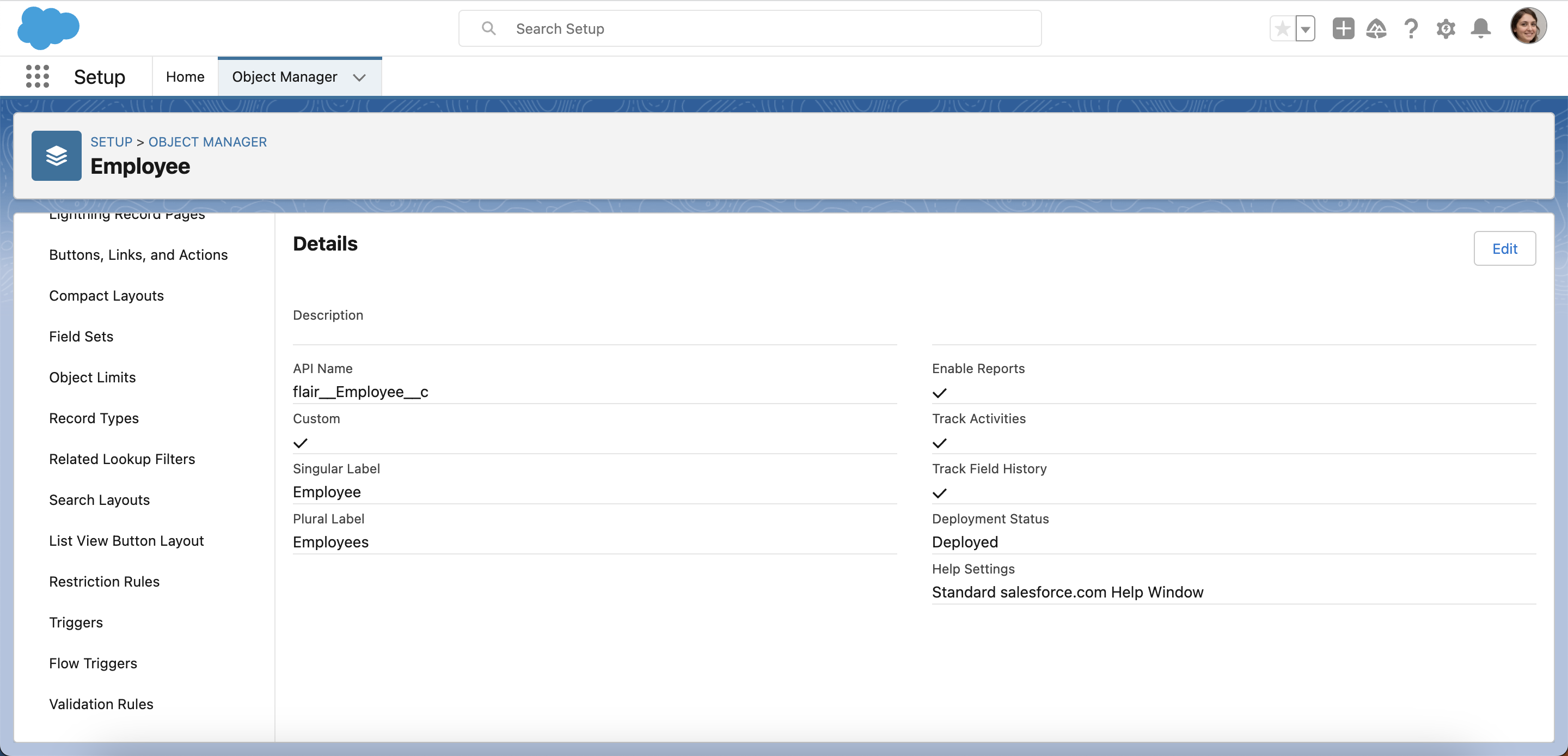 To begin, go to the Employee page in the flair HR app, click the cog icon in the top-right corner of the screen, and select Edit Object.