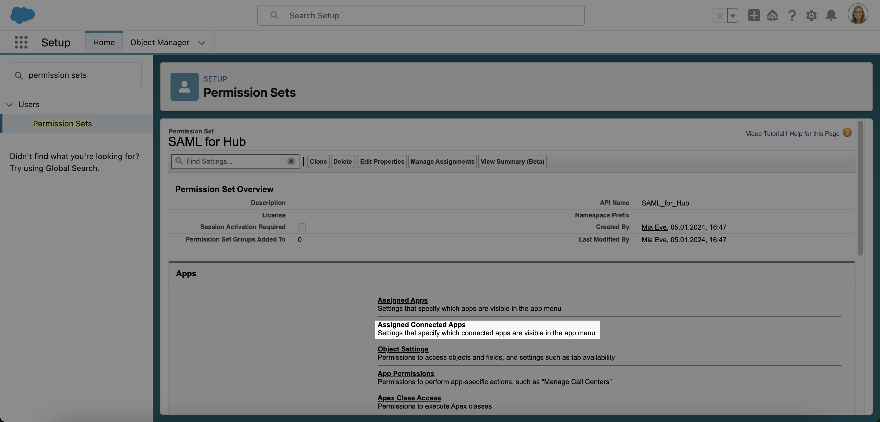 1. With your new permission set open, scroll down to Apps and select Assigned Connected Apps.