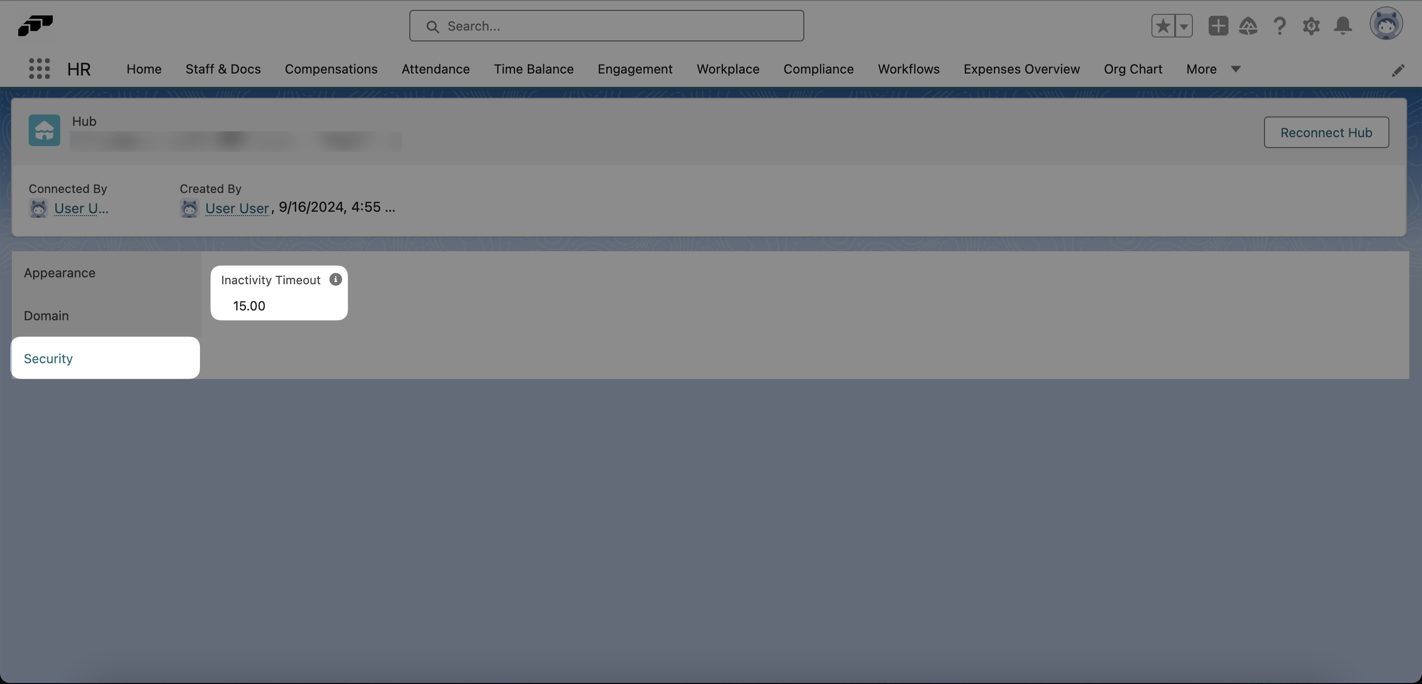 For security reasons, users will be signed out of the Employee Hub after they have been inactive for a certain amount of time. By default, this timeout is set to 15 minutes. You can easily change the timeout length using the flair HR app on Salesforce.