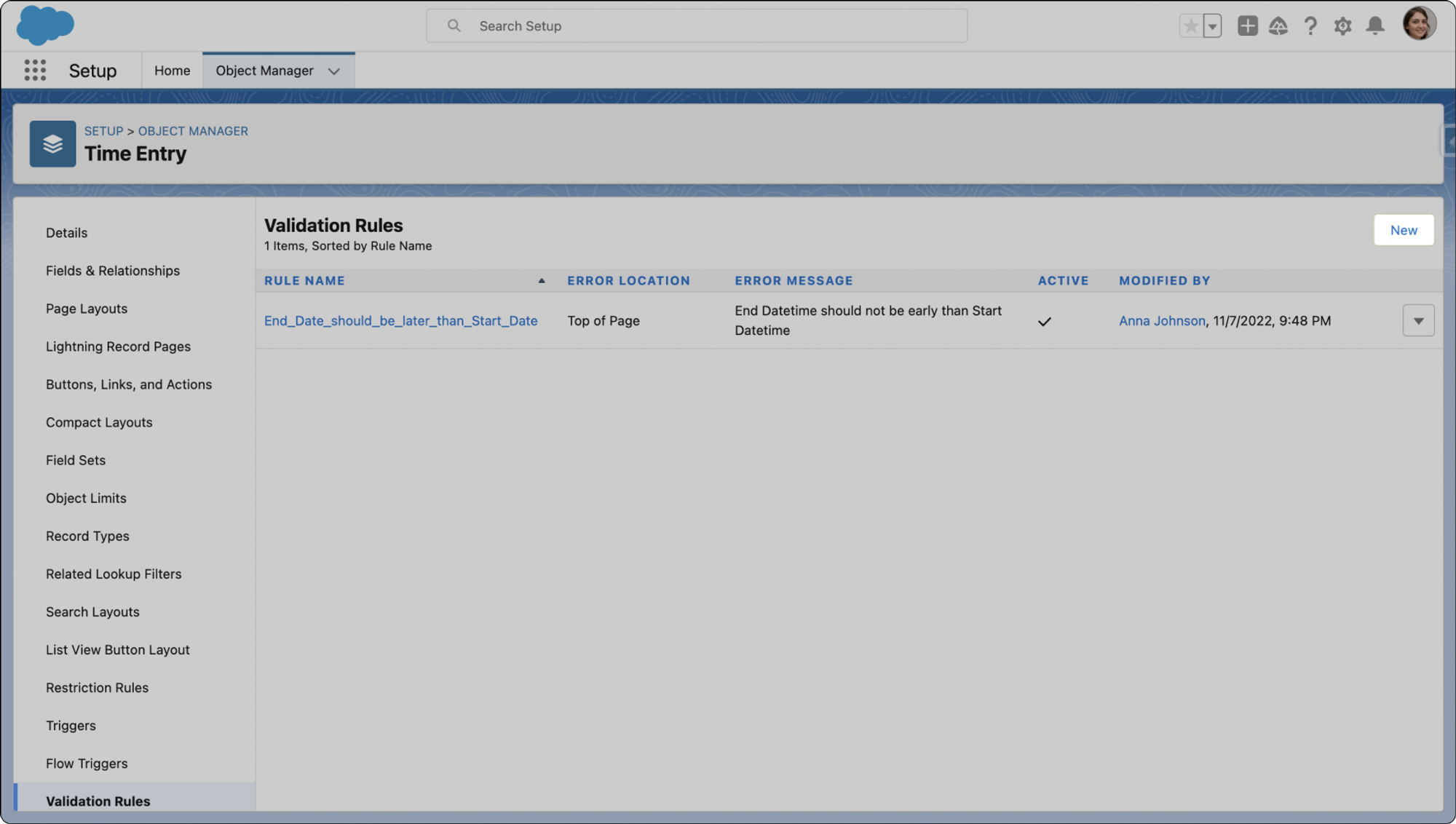 Setting Up Validation Rules for Time Tracking