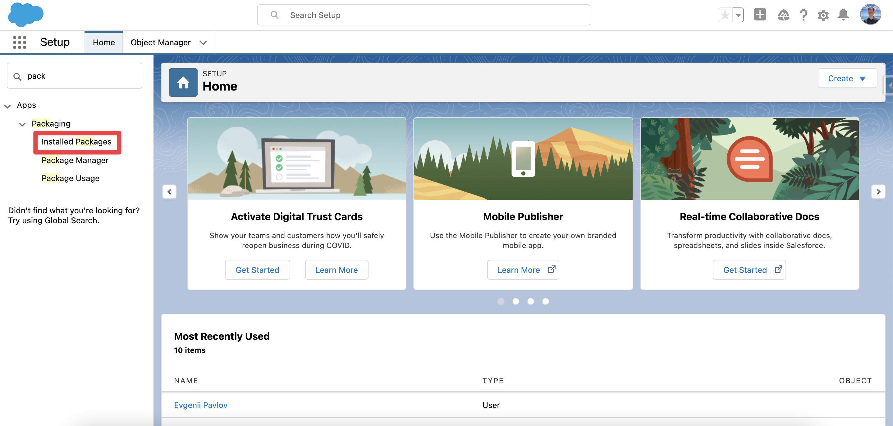 Go to Setup in your Salesforce Org, and search for Installed Packages:
