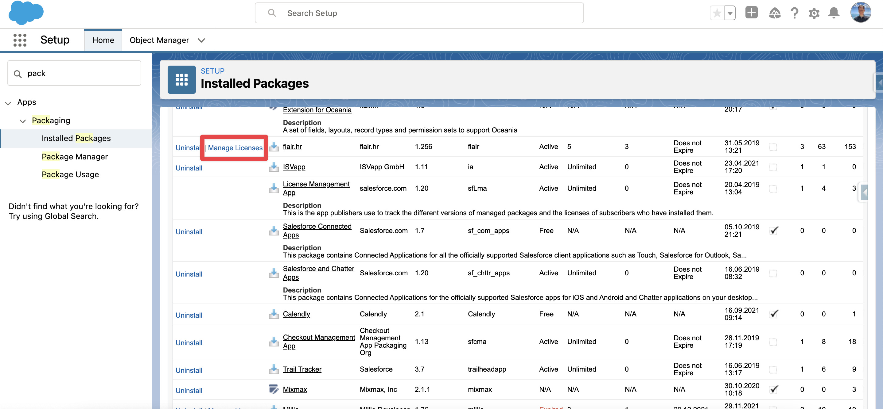 Find the flair.hr package in the list and click Manage Licenses:
