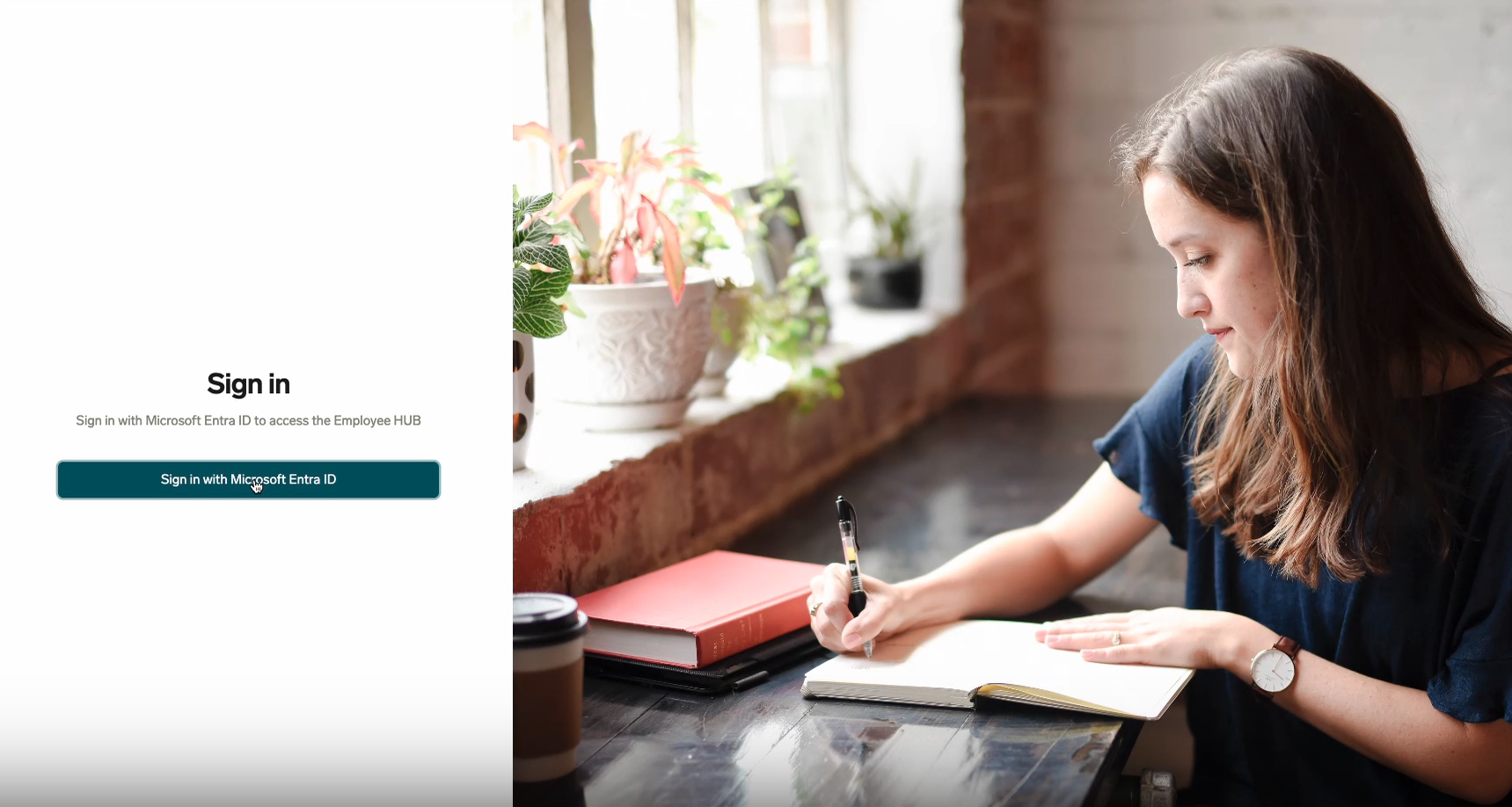 - This will redirect you to the Employee Hub login screen. Click “Sign in with Microsoft Entra ID”. You will then be able to select the Microsoft account you want to use to log in to the Employee Hub.