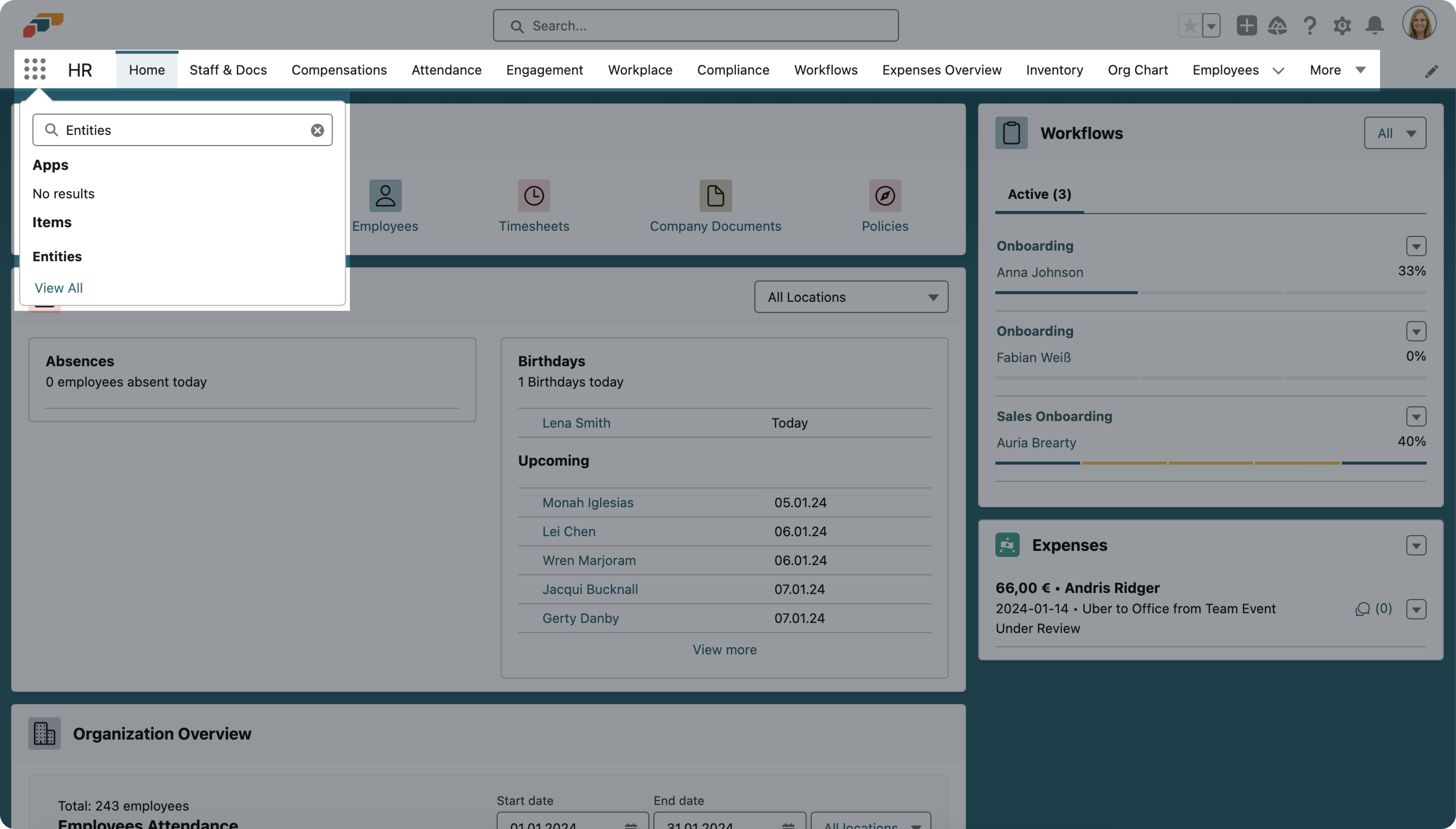 - Open the App Launcher by clicking the nine-dot icon ๐ in the top-left corner of the screen and search for Entities.