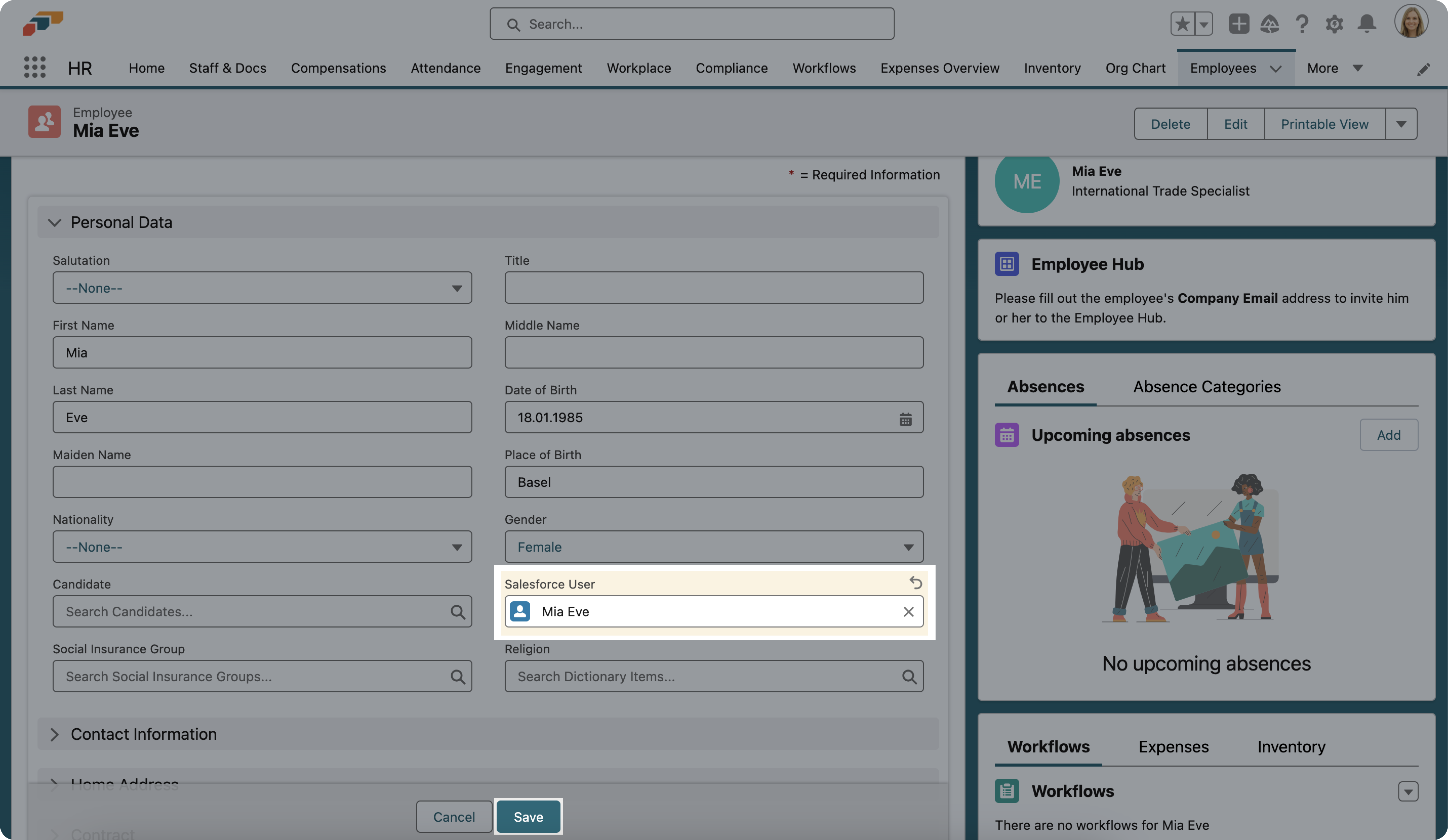 - Select the appropriate Salesforce user in the Salesforce User field and click Save.